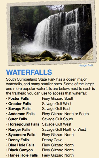 Friends of the Parks is a group of volunteer citizens dedicated to supporting Fiery Gizzard, Savage Gulf and Head of the Crow State Parks. Together, at more than 35,000 acres, these parks represent one of the largest areas of protected pristine wilderness in Tennessee.